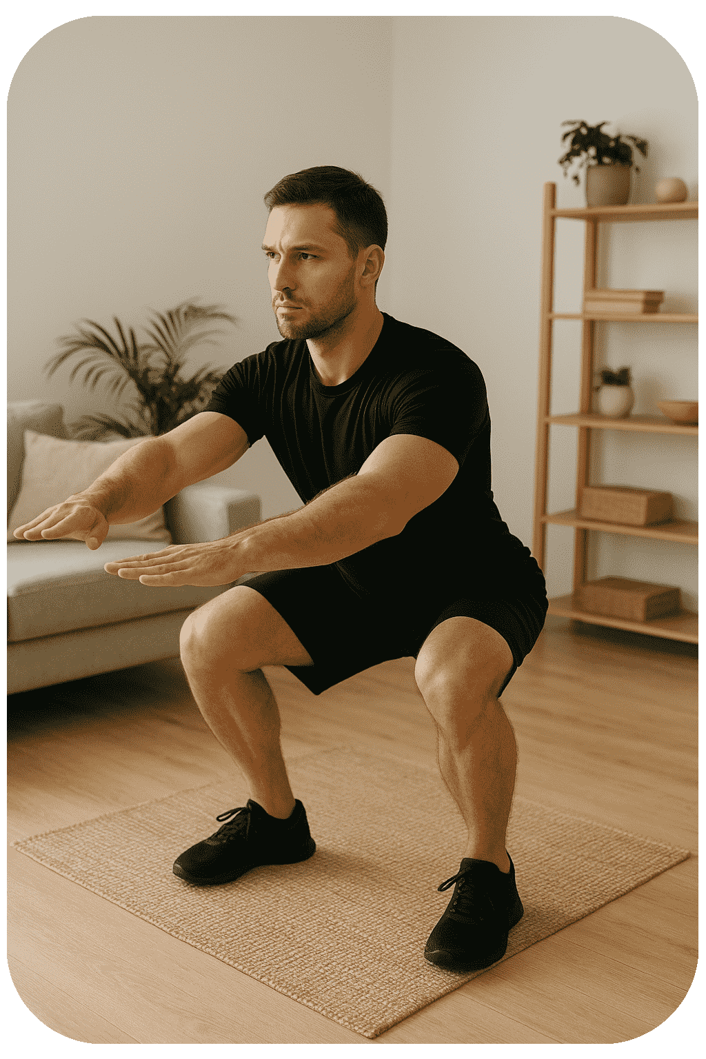 حرکتی ساده و پایهای برای تقویت پاها و باسن. روزانه ۳ ست ۱۵ تکراری انجام دهید.